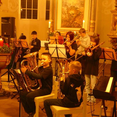 Den mitreißenden und bewegenden Abschluss des Abends bildete die Bläser-AG mit den Titeln Feather Theme (Forrest Gump), Lena's Song sowie Oh, du Fröhliche unter der Leitung von Dirk Hahn. Gesanglich unterstützt wurden sie dabei zunächst von der Solistin Mia Gradewald und abschließend von allen Anwesenden, die in das Gemeindelied einstimmten.