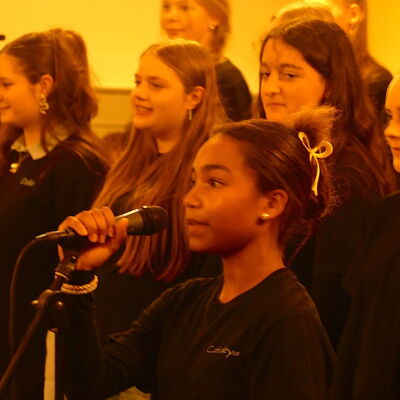 Gewohnt stimm- und ausdrucksstark präsentierte sich die Musical-AG mit zwei poppigen Weihnachtsstücken sowie einem Vorgeschmack auf die kommende Bühnenshow im Sommer 2026. Die Vielzahl an Solopassagen von Ensemblemitgliedern zeigte, dass das durch Schülerinnen selbstverwaltete Ensemble insgesamt großartig aufgestellt ist.