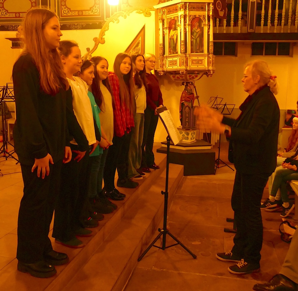 Mit Feliz Navidad wurde ein rhythmusorientierter Titel präsentiert, der zeigte, dass auch die „Kleinen“ schon ein musikalisch durchaus seriöses Ensemble darstellen. Zuvor hatte der von Kea Oelschlägel geleitete Schulchor sein diesjähriges Programm dargeboten. Mit zwei Titeln aus dem Krippenspiel wurde unter anderem auch bereits ein Einblick in den am Freitag stattfindenden Schulgottesdienst gegeben.