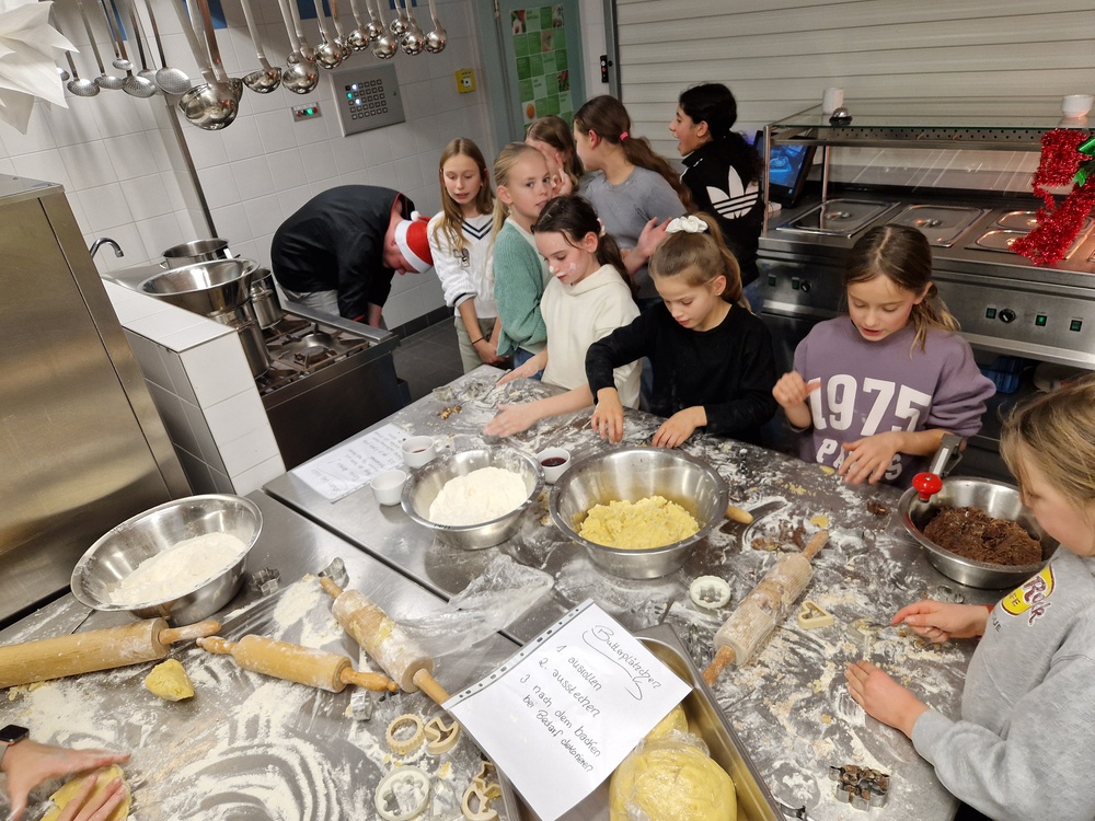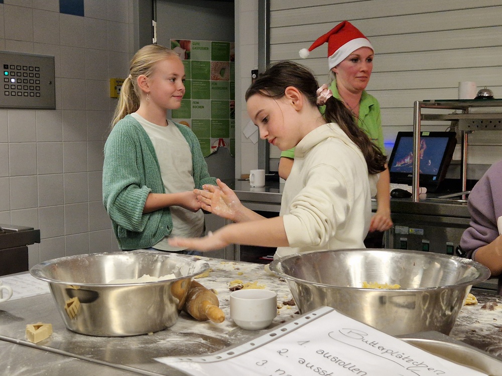 Verschleppt war kein einziges Rezept, sondern Jule hatte an vier Stationen unterschiedliche Rezepte hinterlegt, teils schon mit vorbereiteten Teigen, sodass einer Veredelung hin zu Kokosmakronen, Buttergebäck, Schwarz-Weiß-Gebäck und Vanillekipferln nichts mehr im Wege stand. Zahlreiche Erzeugnisse wurden sogar noch kreativ weiterentwickelt.