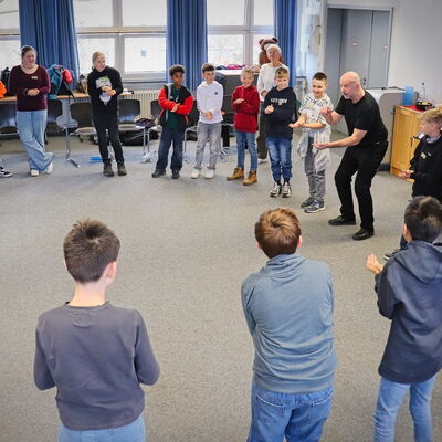 Projekt „Zeitmaschine“: Das Ensemble „Capella de la Torre“ spielt vor und musiziert gemeinsam mit der Klasse 6b
