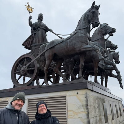 Herr Rahn und Herr Gerke auf dem Dach des Braunschweiger Schlosses -