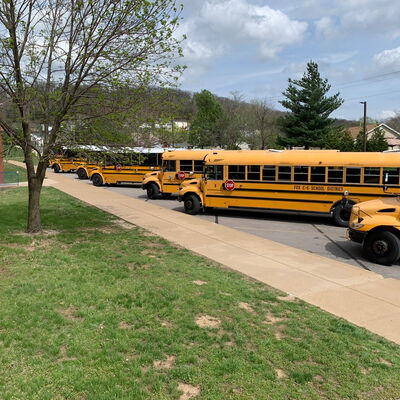 Die bekannten gelben Schulbusse warten auf die Schüler und Schülerinnen -