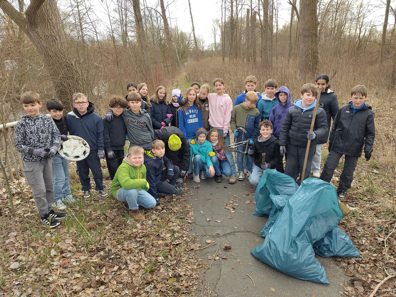 Im Rahmen des Aktionstags „Sauberes Wolfenbüttel“ waren die Klassen 5a, 5c, 6a und 7a gemeinsam mit ihren Klassenlehrkräften mit großem Engagement im Einsatz. Ausgestattet mit Handschuhen und Müllsäcken sammelten die Schülerinnen und Schüler rund um die Schule, im Bereich des Schulwaldes und in der Umgebung eine große Menge Müll und Unrat ein.
