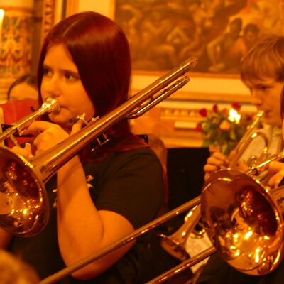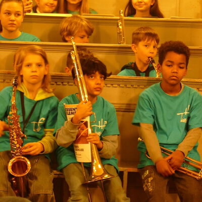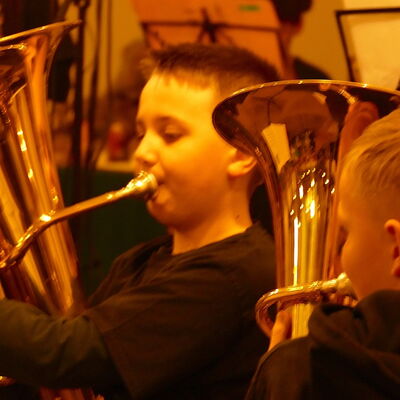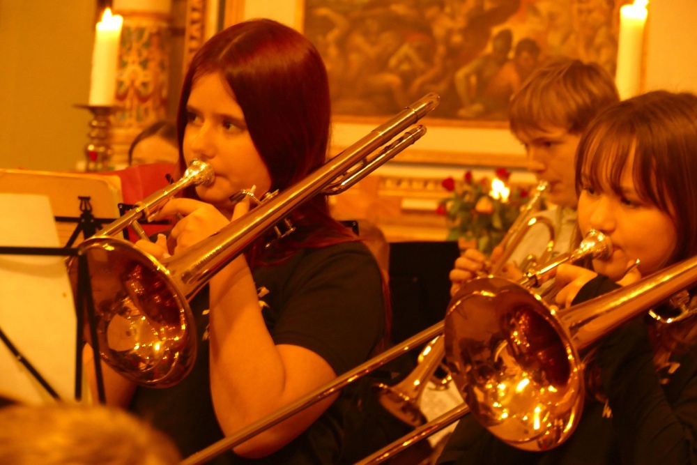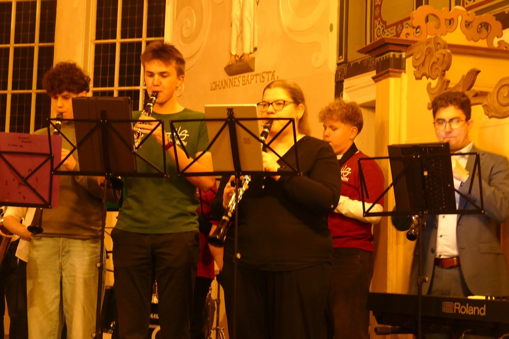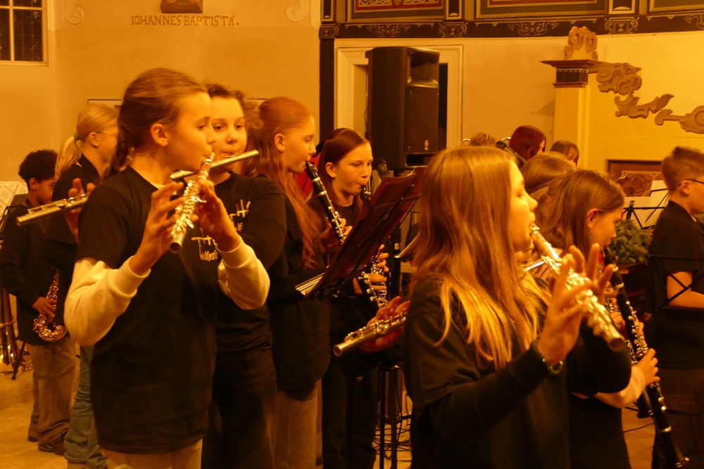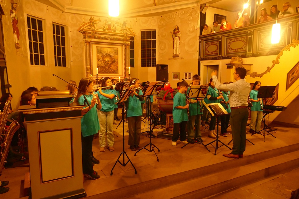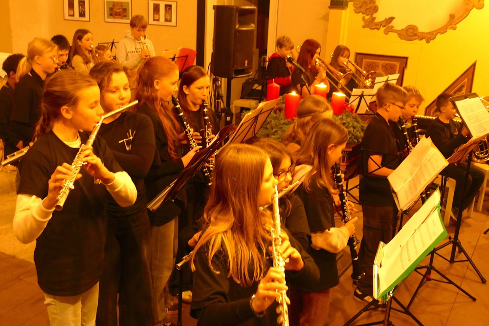 Eine vertraute Tradition bildete sich schon im ersten Programmpunkt ab, in dem die Bläserklasse 5 unter der Leitung von Daniel Groneberg im Rahmen des Abends ihre ersten Töne vor Publikum spielte.