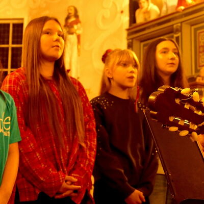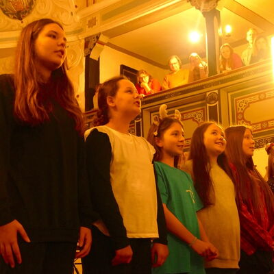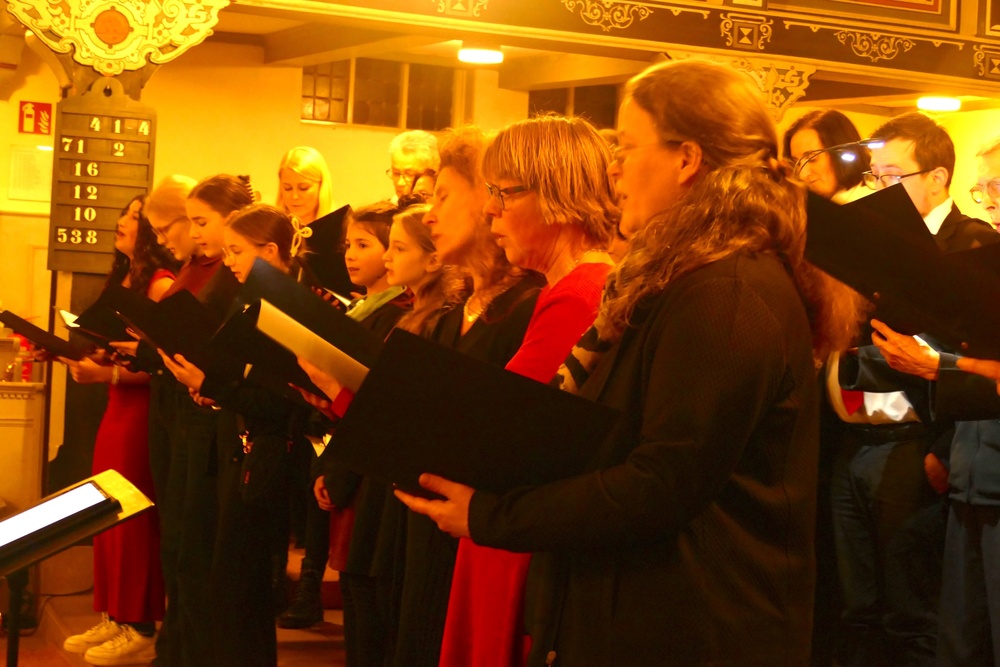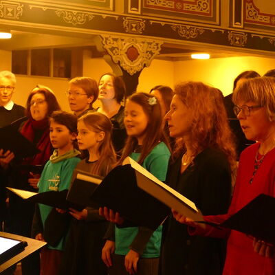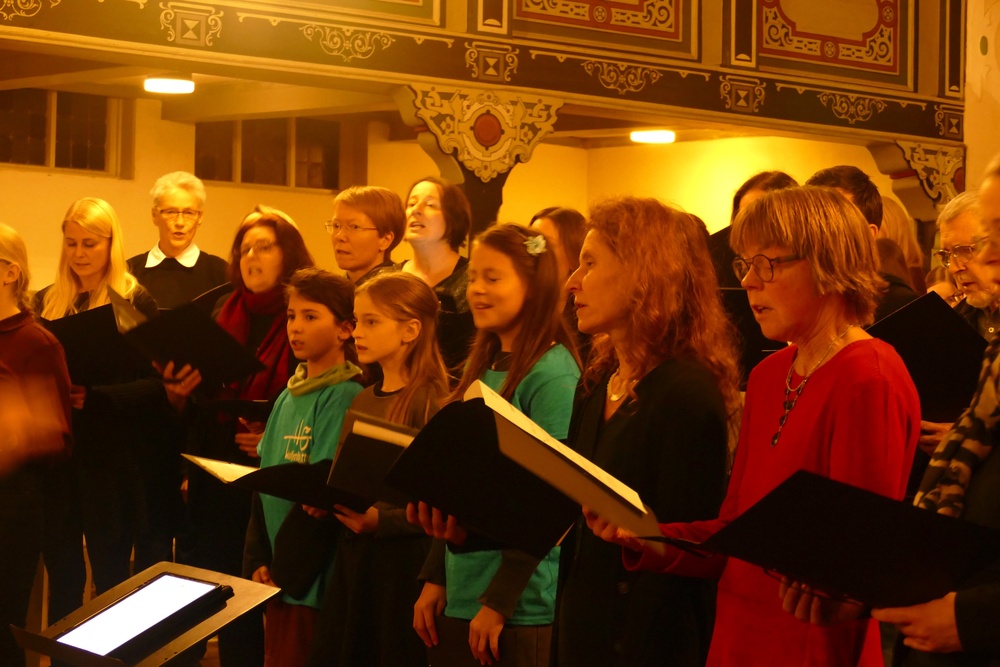 Wie in jedem Jahr präsentierte ein Projektchor aus Schülerinnen, Lehrkräften, Eltern und weiteren Interessierten zwei vierstimmige Weihnachtsstücke. Auch dies ein verlässlicher und beliebter Programmbaustein, der aus dem THG-Weihnachtskonzert nicht wegzudenken ist. So gelingt es doch jedes Jahr wieder, Sängerinnen und Sänger mit unterschiedlichen vokalen Erfahrungen für die gemeinsame Sache zu begeistern.