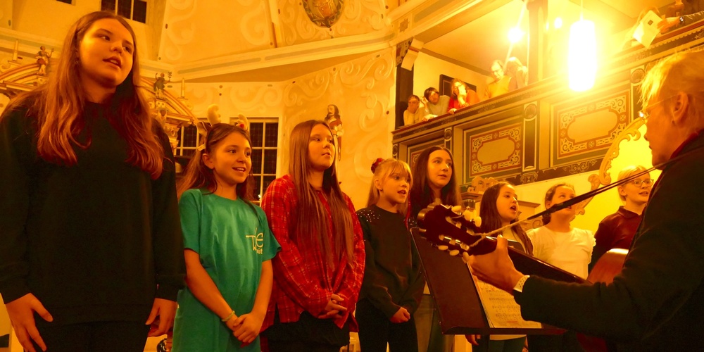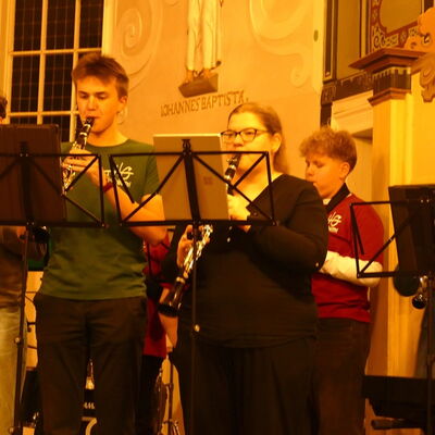 Neben dem Hören von Musik stand über den Abend verteilt auch das gemeinsame Singen traditioneller Advents- und Weihnachtslieder auf dem Programm. Holger Seifert begleitete die Gemeinde dabei souverän an der Orgel. Eine Neuerung stellte in diesem Jahr die Organisation dar, die nicht allein durch Lehrkräfte, sondern durch eine eigens dafür eingerichtete Arbeitsgemeinschaft durchgeführt wurde.