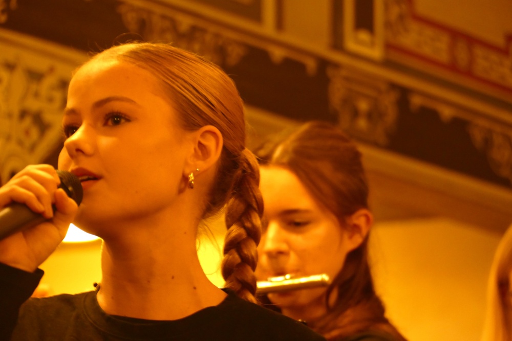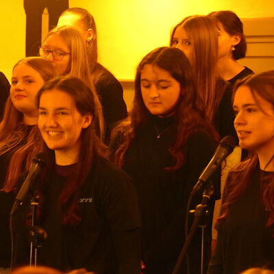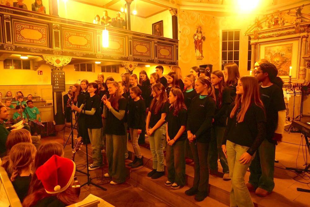 Gewohnt stimm- und ausdrucksstark präsentierte sich die Musical-AG mit zwei poppigen Weihnachtsstücken sowie einem Vorgeschmack auf die kommende Bühnenshow im Sommer 2026. Die Vielzahl an Solopassagen von Ensemblemitgliedern zeigte, dass das durch Schülerinnen selbstverwaltete Ensemble insgesamt großartig aufgestellt ist.