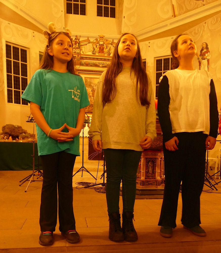 Mit Feliz Navidad wurde ein rhythmusorientierter Titel präsentiert, der zeigte, dass auch die „Kleinen“ schon ein musikalisch durchaus seriöses Ensemble darstellen. Zuvor hatte der von Kea Oelschlägel geleitete Schulchor sein diesjähriges Programm dargeboten. Mit zwei Titeln aus dem Krippenspiel wurde unter anderem auch bereits ein Einblick in den am Freitag stattfindenden Schulgottesdienst gegeben.
