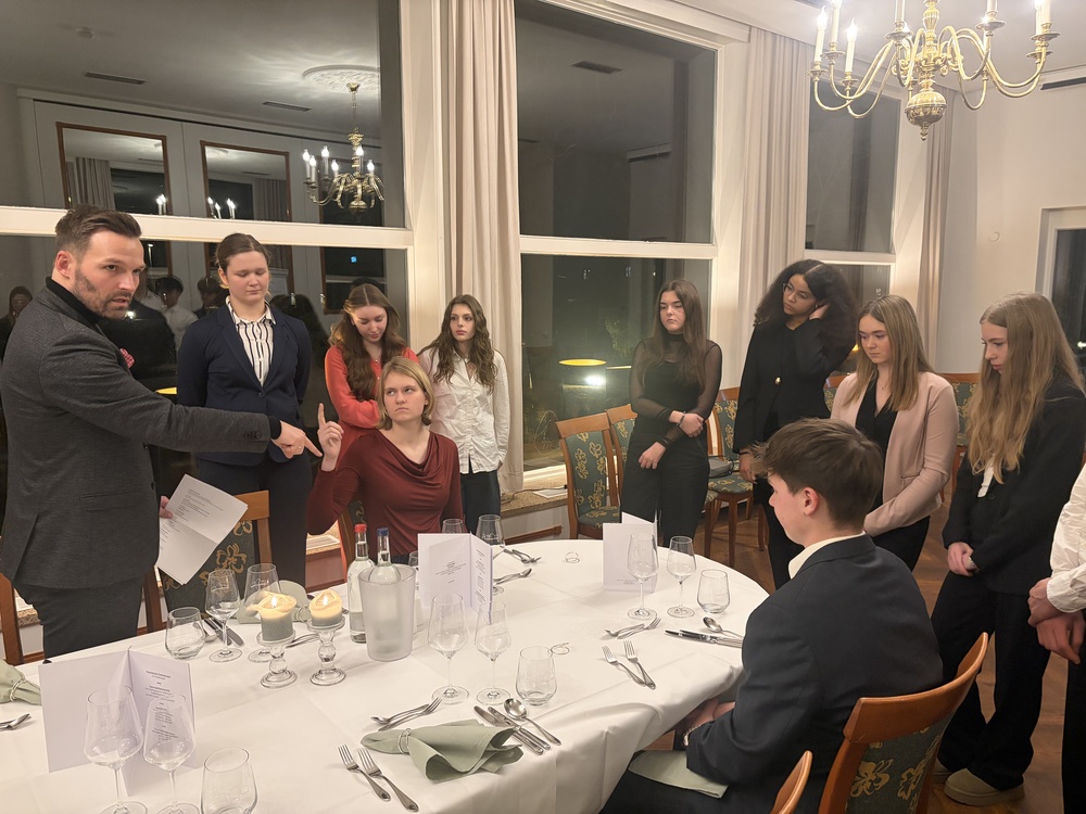 Das Projekt, initiiert von den Wirtschaftsjunioren Braunschweig, befindet sich im dritten und finalen Jahr. Ein Highlight war nun ein tolles Etikette Dinner – die Coaches Christopher und Antonia sprachen über moderne Tischkultur, gesellschaftliche Umgangsformen sowie sicheres und kleidungstechnisch angemessenes Auftreten bei offiziellen Anlässen. Im Anschluss an das Coaching gab es bei einem gemeinsamen Dinner dann die Gelegenheit, das neu Erlernte sofort auszuprobieren und anzuwenden.