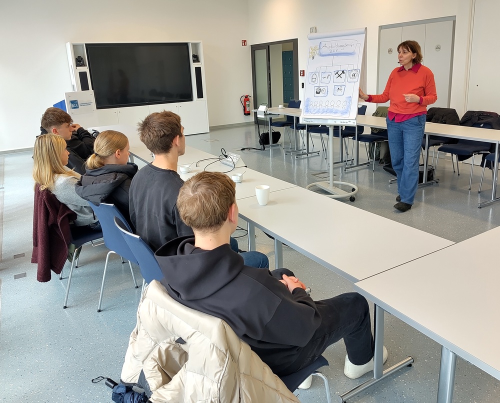 Darüber hinaus stellte Katja Rothe, verantwortlich für den Bereich Ausbildung bei der BGE, verschiedene berufliche Perspektiven vor. Die BGE gehört zu den wichtigsten Arbeitgebern der Samtgemeinde Asse und bietet vielfältige Karrieremöglichkeiten in Technik, Verwaltung und Wissenschaft.