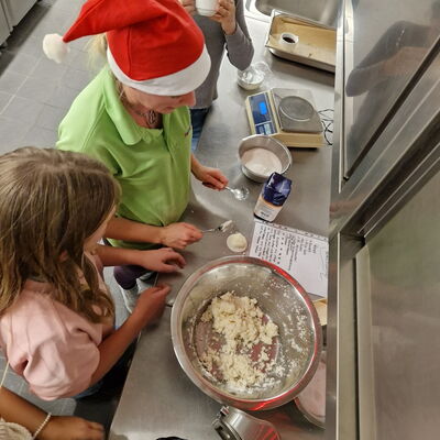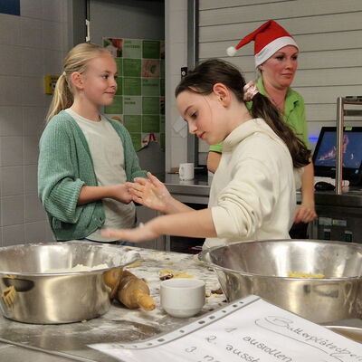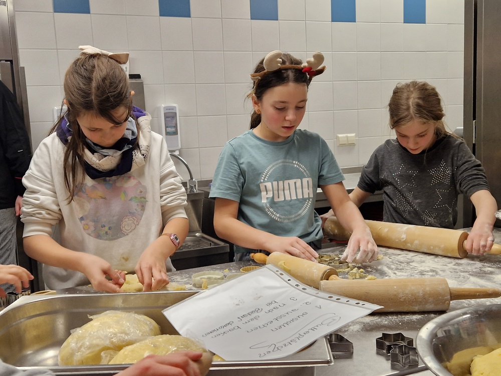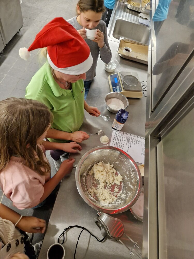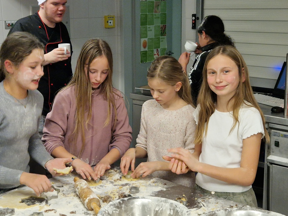 Verschleppt war kein einziges Rezept, sondern Jule hatte an vier Stationen unterschiedliche Rezepte hinterlegt, teils schon mit vorbereiteten Teigen, sodass einer Veredelung hin zu Kokosmakronen, Buttergebäck, Schwarz-Weiß-Gebäck und Vanillekipferln nichts mehr im Wege stand. Zahlreiche Erzeugnisse wurden sogar noch kreativ weiterentwickelt.