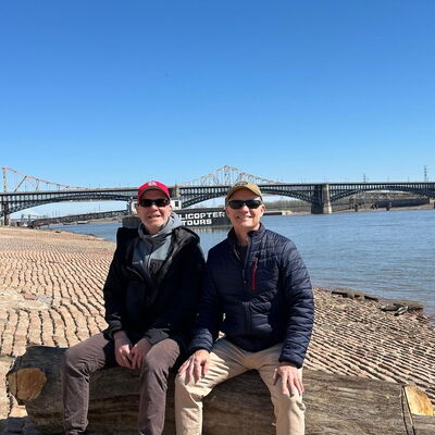 Am Mississippi, im Hintergrund die erste Stahlbrücke der Welt -