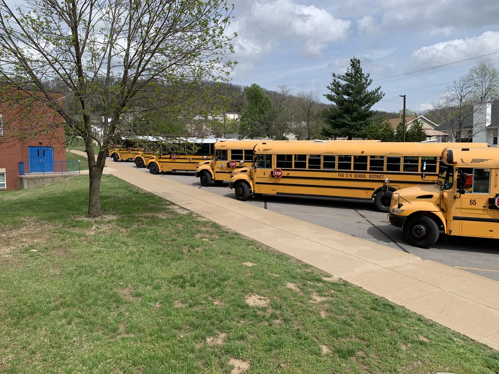 Die bekannten gelben Schulbusse warten auf die Schüler und Schülerinnen -