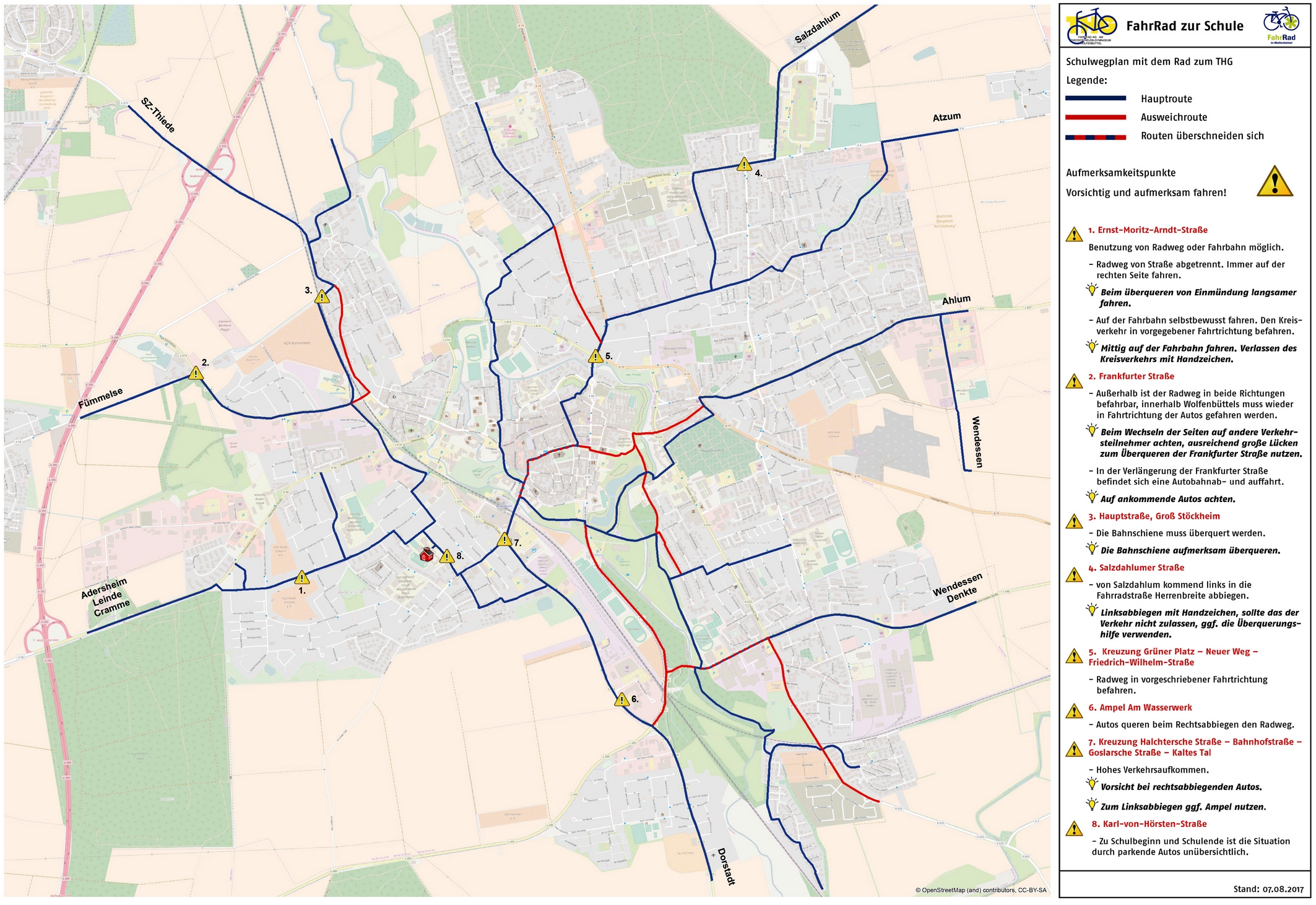 Natürlich erreicht man das THG super mit dem Rad - wie eigentlich alles in Wolfenbüttel. Wer sich nicht sicher ist, kann sich den Radschulwegplan betrachten oder herunterladen, den wir gemeinsam mit der Stadt Wolfenbüttel für das THG entwickelt haben.