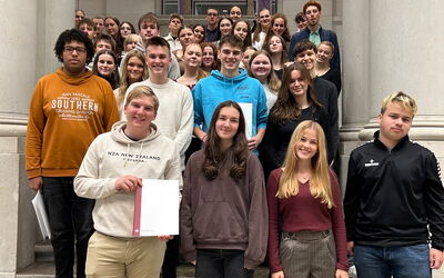 MTV-Blasorchester pflanzt Flatterulme im THG-Schulwald – Musik und Natur im Einklang